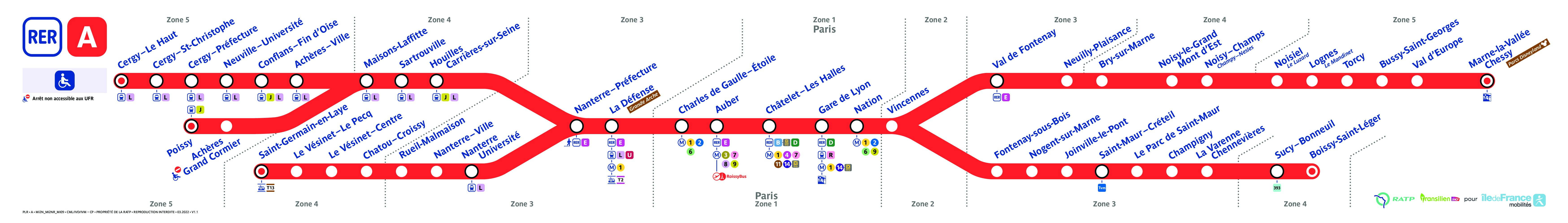Les stations Métro et RER se situent en sous-sol, accessibles par escalator ou ascenseur.